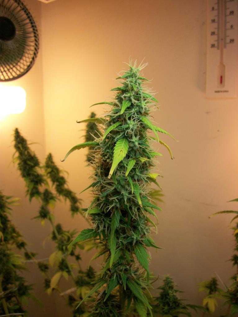 Thought I would add something that seemed to help. Not only is there 400W HPS, but over 200W of CFL (warm and cool). What seems to be helping a lot are the OTT CFL bulbs. Has a nice bright color and ultraviolet range, but are not the same as a Daylight CFL. Maybe it's just the plant, but the OTT Bulbs have made their way into a permanent lighting addition to the grow.