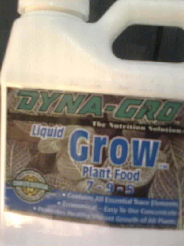 I used Dynagrow but just a little less then half the dosage. There is also a spray dosage that I went lite on as well http://i36.photobucket.com/albums/e9/neeperconcept/Image021.jpg Only half the dosage. But I also have http://i36.photobucket.com/albums/e9/neeperconcept/Image020.jpg I have a picture but took it on a bad camera. http://i36.photobucket.com/albums/e9/neeperconcept/Image019.jpg This is how it looks right now. Don't have vent system for the grow tent yet.